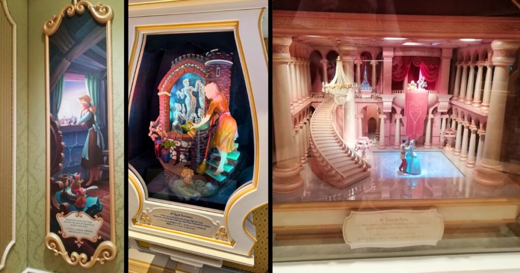 お城の中の「シンデレラのフェアリーテイル・ホール」には、絵やジオラマで物語の名場面が並んでいます。