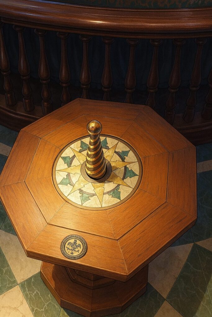 ナビゲーションセンターの中央には、水をたたえた丸い盤が置かれています。