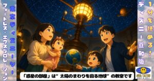 地球も太陽のまわりを回る“動いている星”なんだと教えてくれる、小さな宇宙の教室です。
