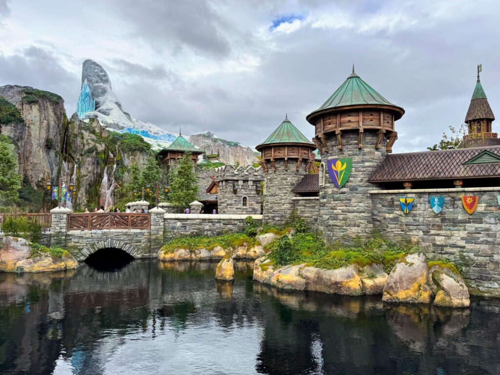 フローズンキングダムは、映画『アナと雪の女王』の物語が幕を閉じたあと、そして『アナと雪の女王2』よりも前の、雪解けのアレンデールを舞台にしています。恐れられていた魔法は受け入れられ、王国は春の空気と祝祭のあたたかさに包まれます。初めて訪れる家族連れにも、映画ファンにも、BGS好きにも心地よい“幸せ期”の王国です。