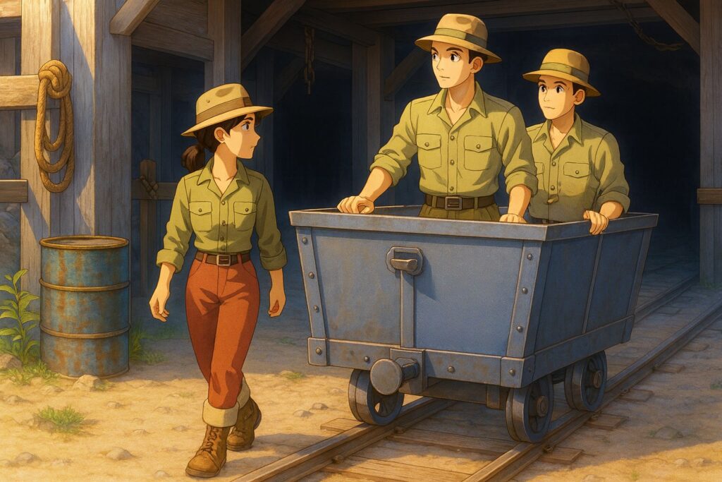 私たちが乗っているホッパーカーは、もともと発掘チームの“まじめな仕事用トロッコ”です。