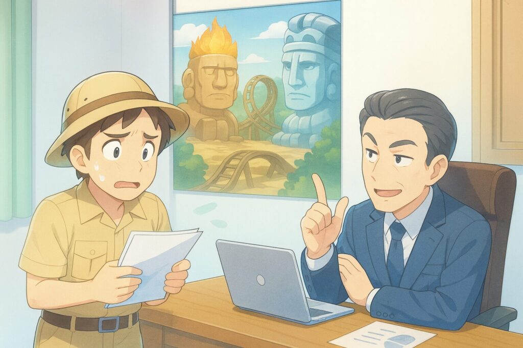 禁忌やらかしでコースがとんでもないことになったあと、発掘チームは「神々の怒りかもしれない」と正直に報告しました。