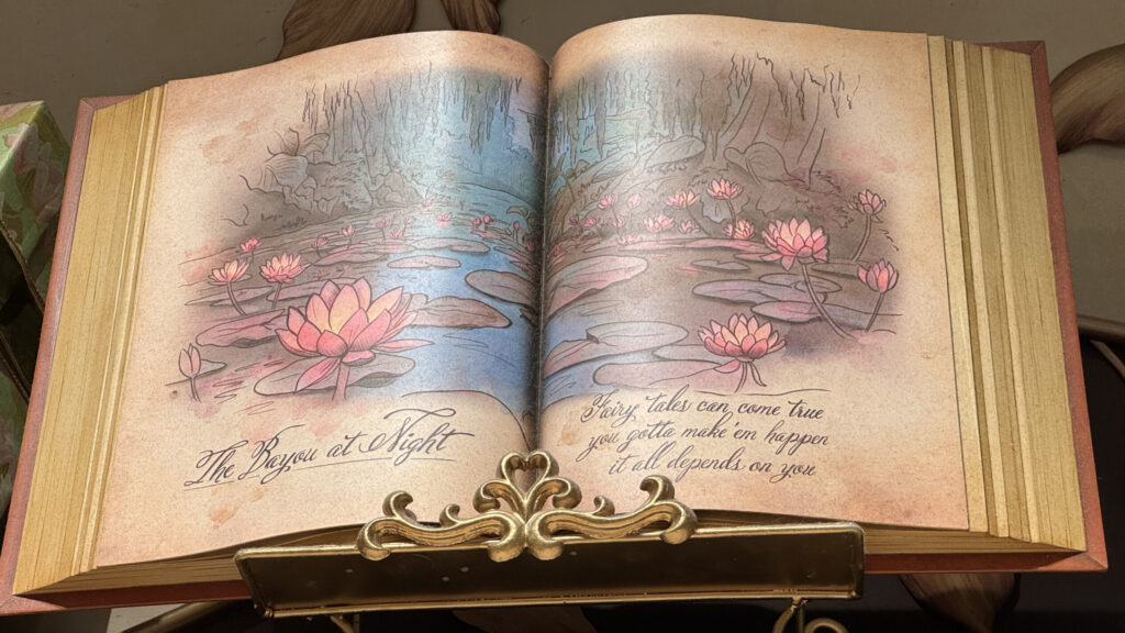 棚に開かれた一冊の本には、「The Bayou at Night(夜の入り江)」の文字。