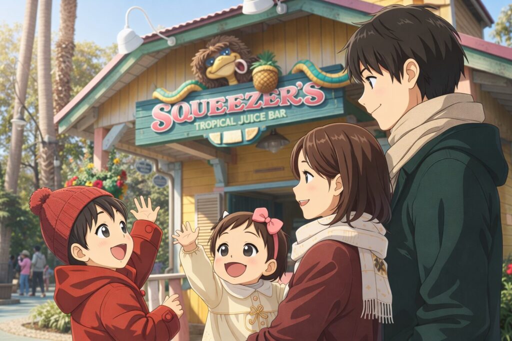 【1分】スクウィーザーズ・トロピカル・ジュースバーはどんな店?(TDL)|陽気なヘビが店名の由来【2026/1/29〜モバイルオーダー対象】