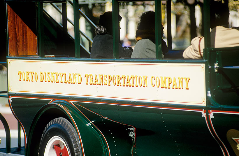 オムニバスの横の「Tokyo Disneyland Transportation Company」=“街のバス”の合図。